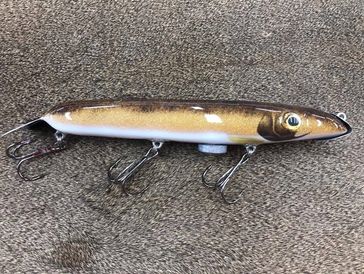 The best action of any glide bait on the market with a deadly wobble on the pause makes the McGlide one of the hottest musky lures in the world. Standard McGlide (fast sinking) made from Hard Maple. Hang Time Cedar (HTC) (slow sinking) made with California Red Cedar. Very user friendly. Can be fished shallow or deep on a fast or slow retrieve. Will not blow out when fishing on a fast retrieve. Handmade, sealed, and several coats of True Coat epoxy for a super long lasting finish.